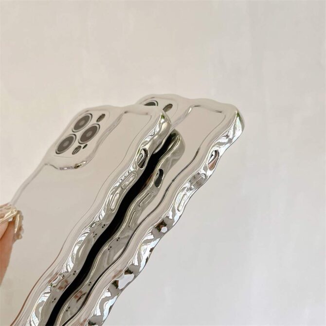 cool minimalist aesthetic glossy silver plated wavy edge softTPU case
