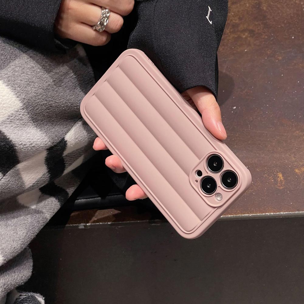 plain matte softsilicone case in faux leather 3D Roman column style stripe design
